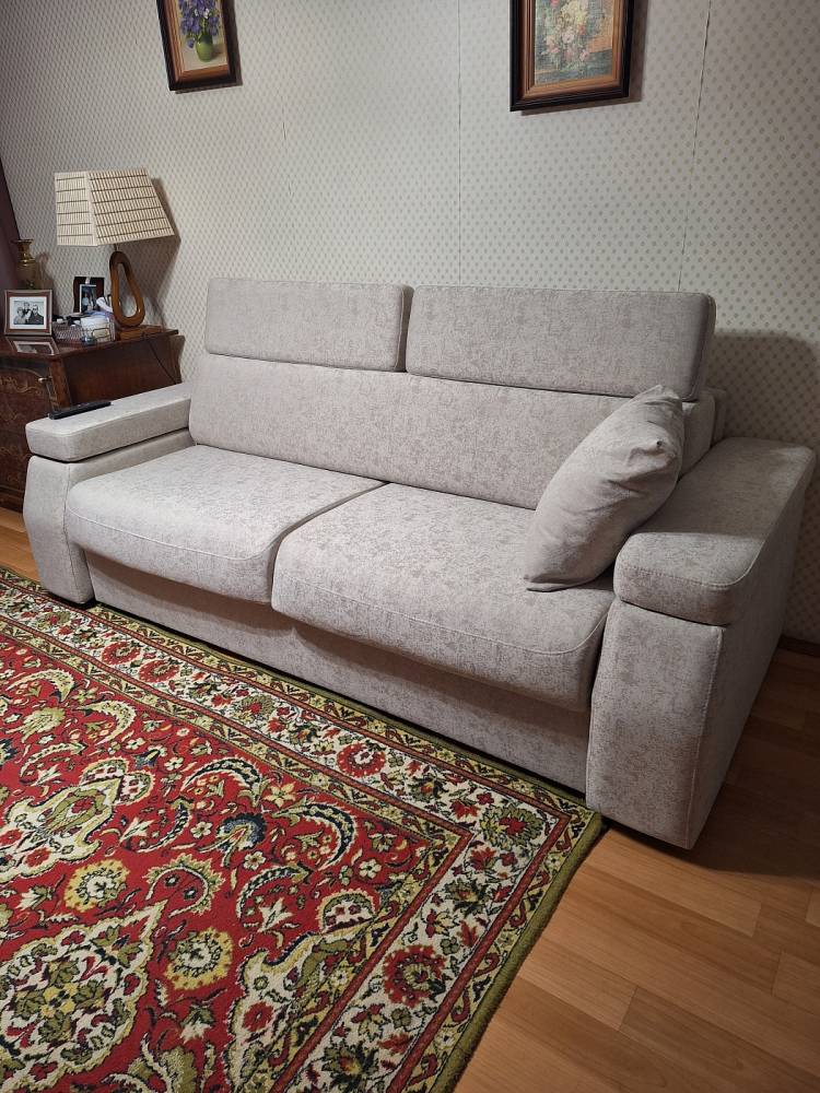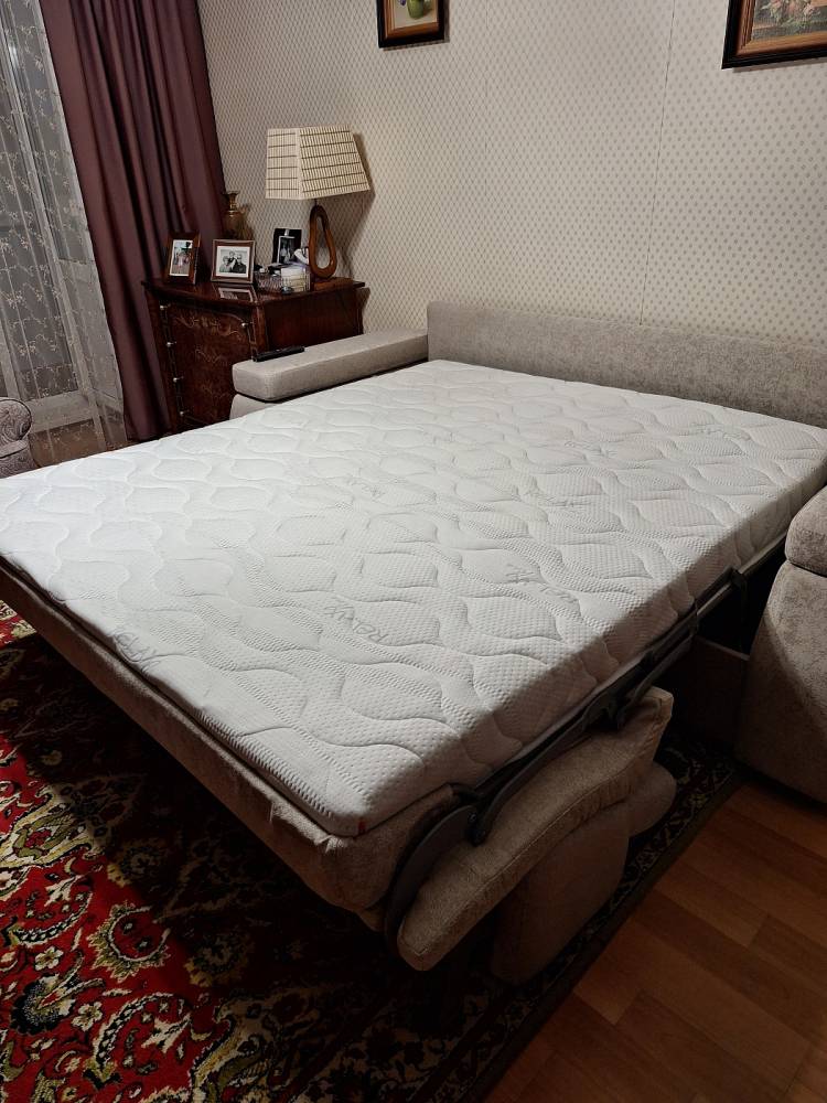 Отличный диван кровать, купили вместо старого пружинного. Небо и земля, этот - полноценная кровать и диван на другой стороне. Теперь все хотят на нем сидеть в собранном виде, уютнейшая обивка - тактильное удовольствие)