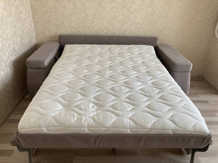 1,5 года назад покупала этот шикарный диван. Сначала дизайн казался непривычный. Думала, что выбрала что-то не то. Распробовала его за эти 1,5 года - это лучший диван, что был в моей жизни! Очень компактный, раскладывается вовсе не тяжело, как кажется сначала - одним махом руки и так же складывается легко. Матрац очень удобный, я на нем реально отдыхаю и хорошо сплю. Ткань приятная и на ощупь и по цвету, сколько кошка не старалась почистить об неё когти - ничего не заметно.