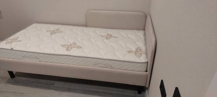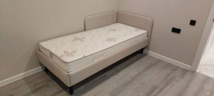 • Обивка кровати выполнена из мебельной ткани.